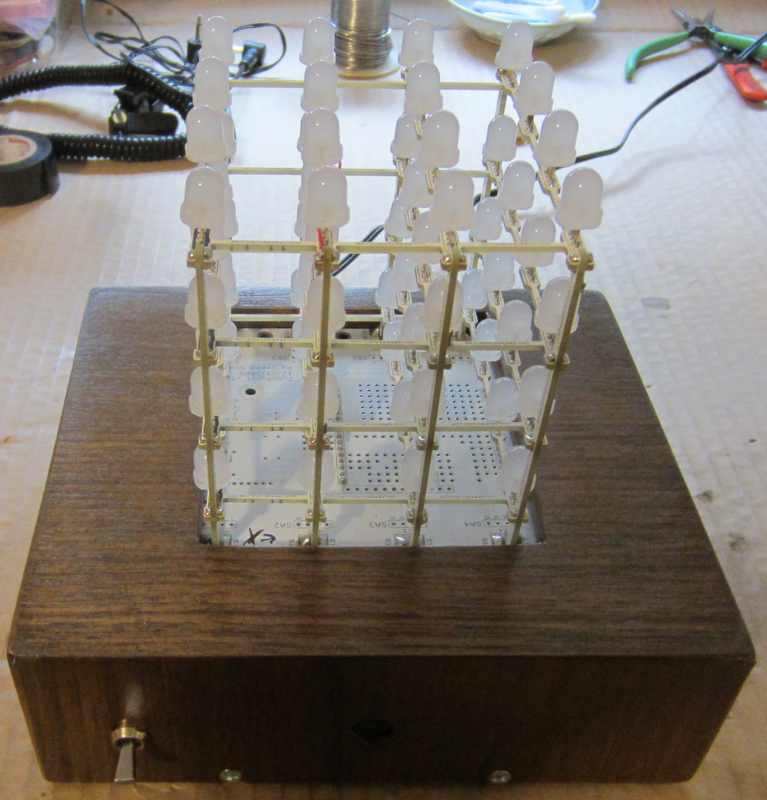 mated together. On top is the Seeed Studio's LED cube, the middle is
