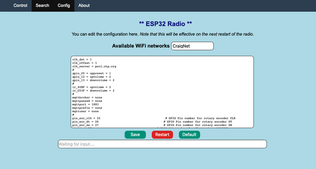 by genre. What is interesting is that the ESP32 isn't involved in the station search. The search is performed (via javascript) in the browser you are using. The site that is being searched for radio stations tests the stations at least once a day to verify they are still operational. Internet radio stations seem to come and go all the time so having a facility to test them for you is a good thing. |